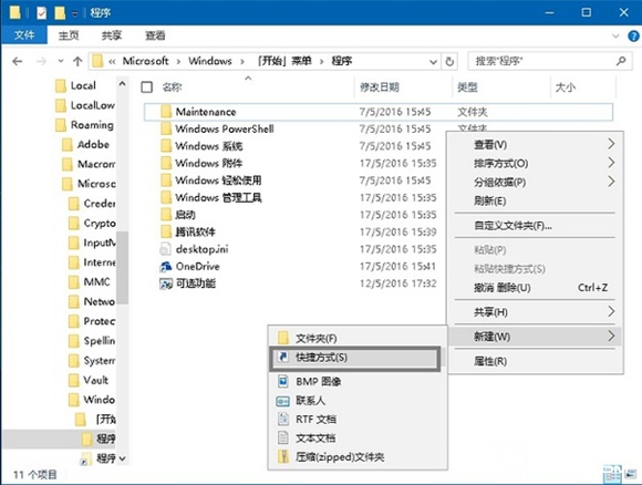 2.進(jìn)入路徑為“C:/Users/(當(dāng)前用戶名)/AppData/Roaming/Microsoft/Windows/Start Menu/Programs”;