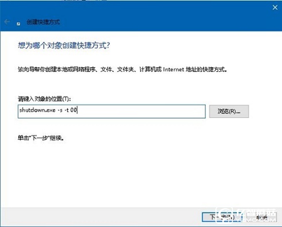 3.右擊新建快捷方式,在彈出的對話框輸入“shutdown.exe -s -t 00”,點(diǎn)擊下一步;