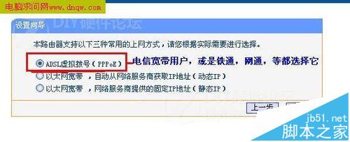 2、在彈出的對話框中勾選下次不提醒 然后點擊下一步 選擇你的上網方式 下一步 輸入寬帶帳號和密碼