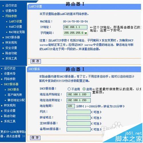 可能要對兩個路由器進行設置。在這里將原來的路由器命名為路由器Ⅰ。后加的路由器命名為路由器Ⅱ。要設置哪個路由器,則使用計算機直接連接那個路由器,同時,最好將其余不相關的網線暫時從該路由器上拆除。路由器Ⅰ的設置參考下圖: