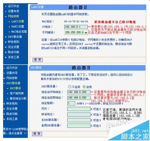 主要把第一個路由器設置好可以上網,第二個路由器關閉DHCP并更改路由地址,首先把第一個路由器設置好 可以正常上網,