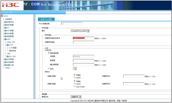 艾泰HIPER 2620和H3C設(shè)備WAN口都是固定IP地址,需要建立IPSEC VPN.