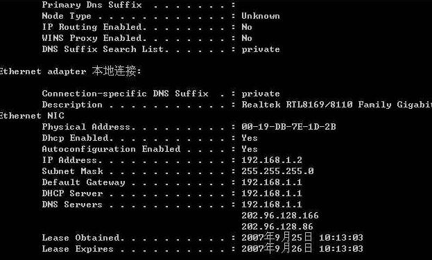 (此項主要是為了應對ISP將帳號和網卡MAC地址綁定的,克隆MAC為可上網電腦的真實MAC地址),及DNS主輔項.(DNS添加到這里可以省確各個電腦上單獨再添加DNS的麻煩),MAC地址及DNS主輔項可以在你的電腦中直接查詢.運行cmd后,執行ipconfig /all,可以獲得這些參數。