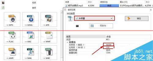 7、當然大家也可以用格式工廠等軟件對Mp3歌曲進行轉換,將碼率設置為128Kb/S,頻率設置為44100Hz,Flash支持的Mp3歌曲通常是這樣的頻率。