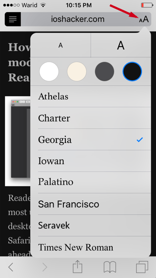 除了背景顏色之外,你還可以在這里選擇不同的字體或者顏色,iOS 9 全新的閱讀視圖模式為用戶提供了更多權限,那么現在你期待 iOS 9、或者是增強后的 Safari 的到來嗎?