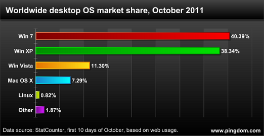 2011年10月份桌面操作系統(tǒng)市場份額占有率