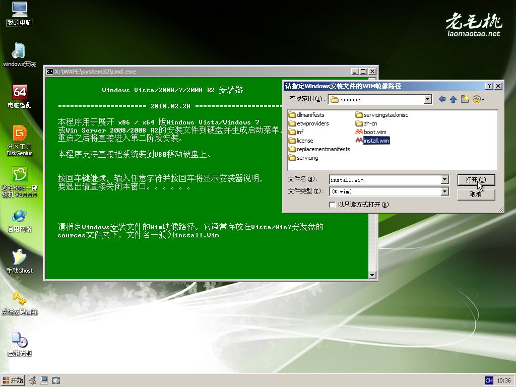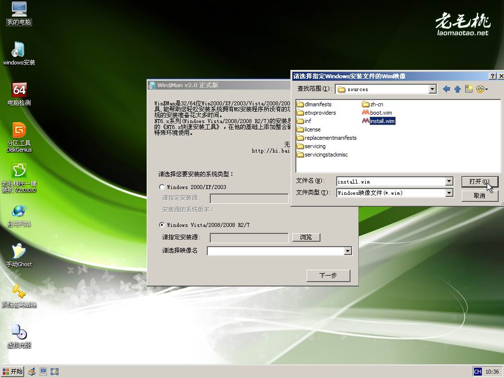方法3、與方法2類似,直接在PE里利用虛擬光驅加載Win7的ISO安裝文件,然后利用NT6安裝工具等軟件進行安裝。