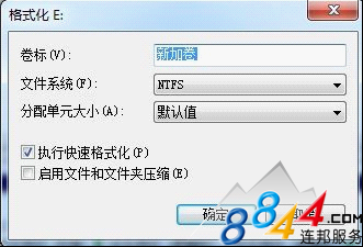 若要使用默認設置格式化卷,請在“格式化”對話框中,單擊“確定”。