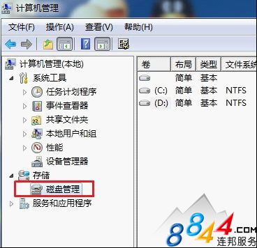 在左窗格中的“存儲”下面,單擊“磁盤管理”。