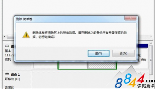 單擊“是”刪除該卷。