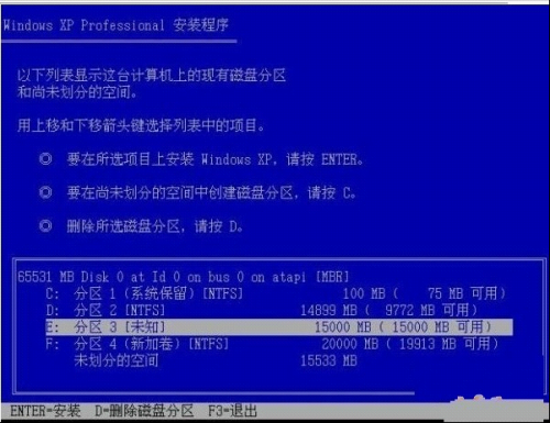 2.由于該分區(qū)是在Win7當(dāng)中創(chuàng)建的,因此XP安裝程序無(wú)法識(shí)別,所以還需要在下一步中再次進(jìn)行格式化操作。