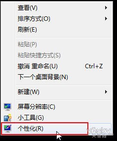 1、在Windows7系統桌面空白處點擊鼠標右鍵,選擇”個性化“。