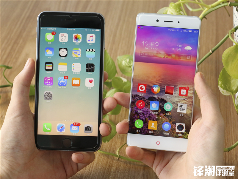 同樣是5.5英寸屏幕的iPhone 6 Plus的實(shí)際握持寬度要比nubia Z11厚一圈。同價位國產(chǎn)旗艦的配置其實(shí)都大同小異,但nubia Z11最大的殺手锏在于選用了一塊兒5.5英寸FHD無邊框1080P屏幕,這年頭超窄邊框的手機(jī)遍地都是,但是亮屏能讓我們這些“閱機(jī)無數(shù)”的老司機(jī)都感到驚艷的并不多。