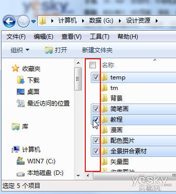 在下圖紅框的范圍內(nèi)點擊鼠標(biāo),就可以非常方便地選擇多個我們需要的指定文件夾和文件。