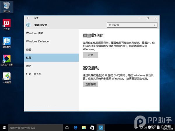 ▲打開設(shè)置—更新和安全—恢復(fù)—點(diǎn)擊高級啟動(dòng)中的“立即重啟”