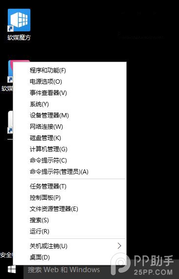 ▲進(jìn)入安全模式后在開始按鈕右鍵菜單中選擇“設(shè)備管理器”