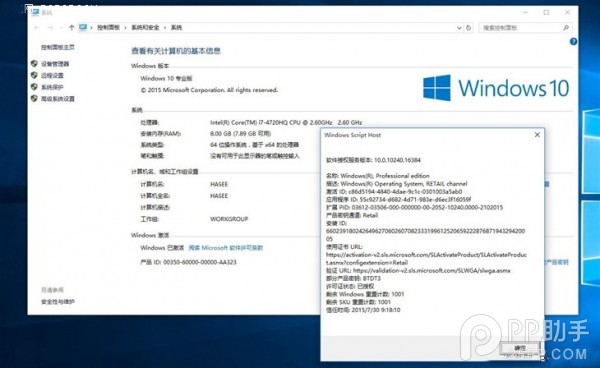 當筆者使用360升級助手升級到Windows10后,再次查看該機的激活狀態時發現,該機的產品密鑰通道為:Retail,并且為永久激活狀態,也就意味著盜版Windows8.1可以通過360升級助手升級Windows后洗白。