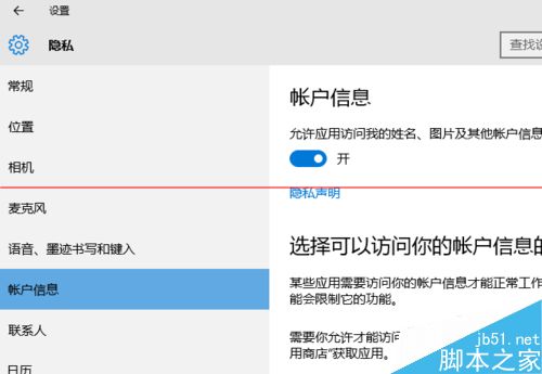 在 Windows 10 里,應(yīng)用程序可以共享你賬戶的圖片、賬戶名等信息。如果你覺得他們這么做有點過分了,那就關(guān)閉這種共享:“開始”——>“設(shè)置”——>“隱私”——>“賬戶信息”。