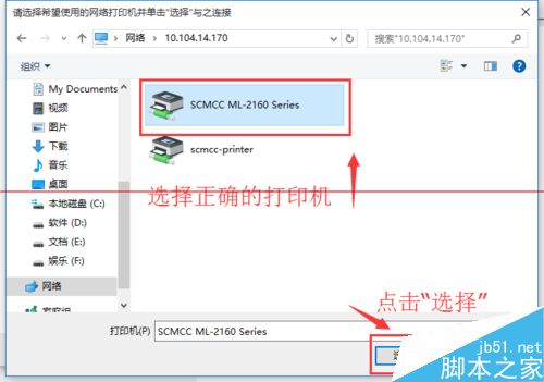 5、這時出現了遠程共享的打印機,選中需要的打印機,并點擊“選擇”