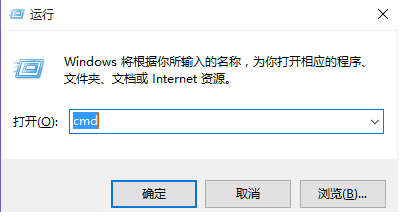 2、在“運行”對話框中輸入“cmd”,點擊“確認”或直接“回車”,打開命令提示符CMD窗口