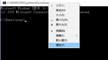 3、在命令提示符CMD窗口的標題欄上點擊“右鍵”