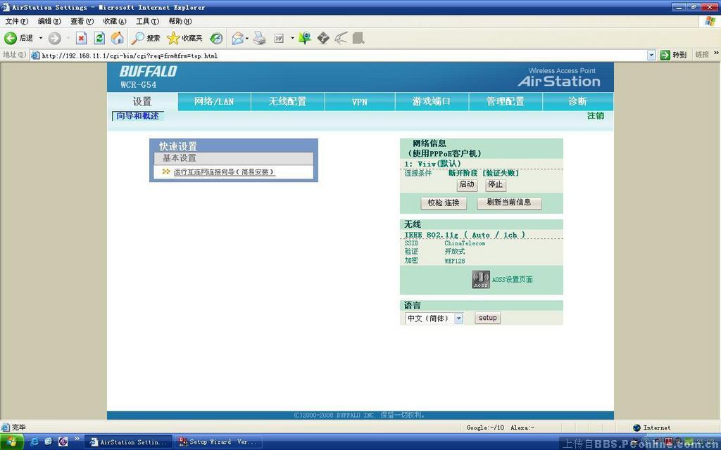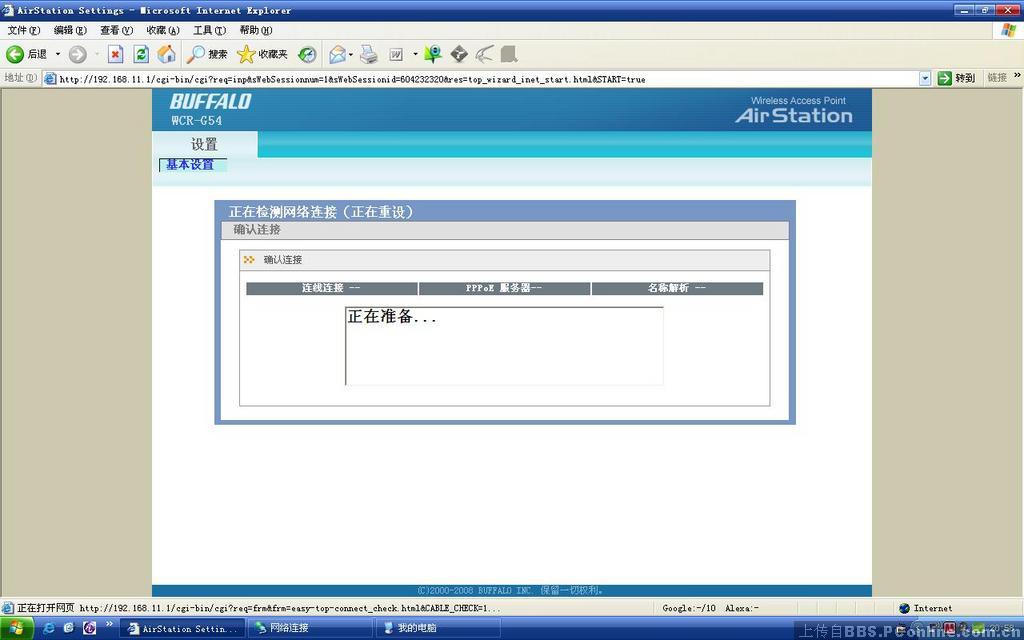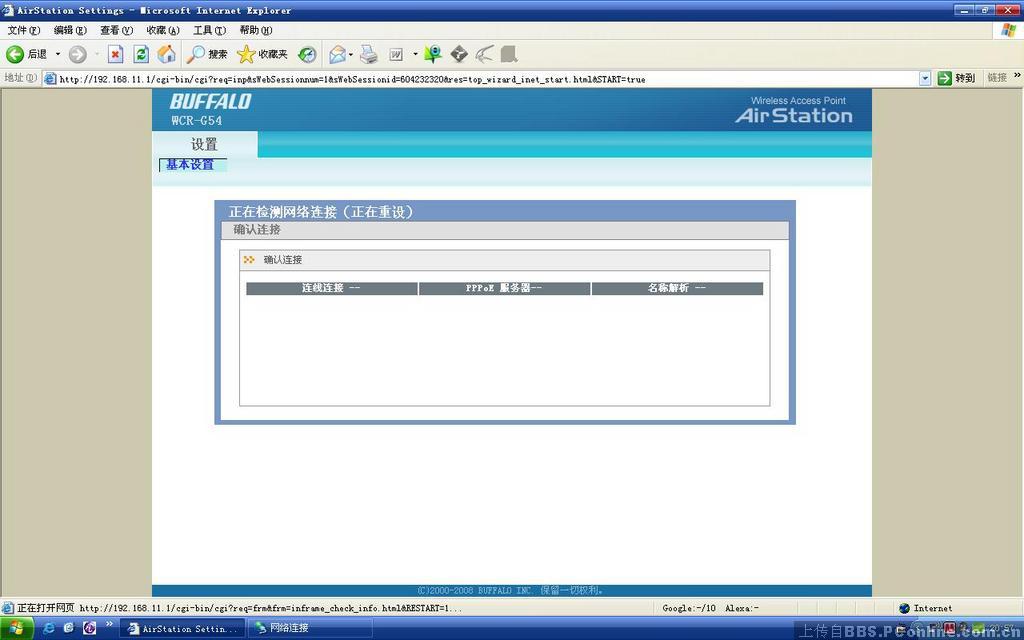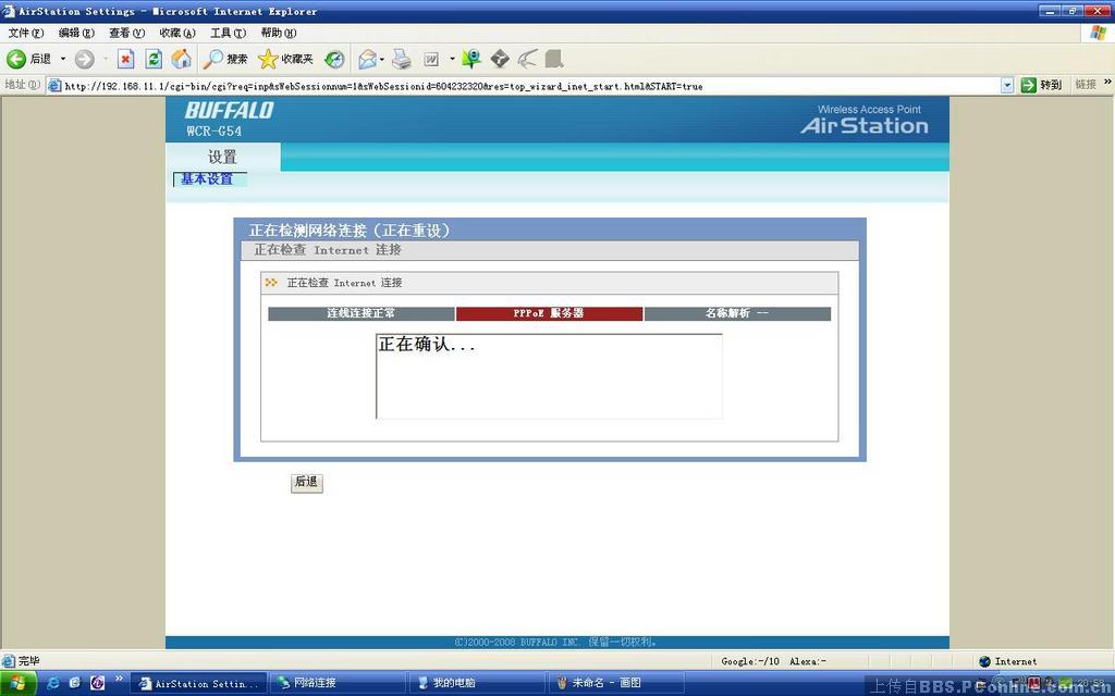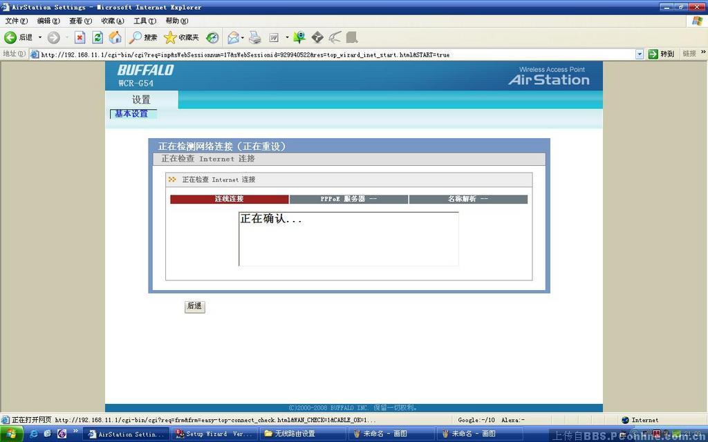基本設置中的運行互聯(lián)網連接向導可以檢測無線路由是否設置成功,點擊后開始檢測與互聯(lián)網是否連接: