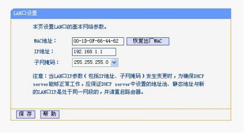 MAC地址是本路由器對局域網(wǎng)的MAC地址,此值不可更改。IP地址是本路由器對局域網(wǎng)的IP地址,局域網(wǎng)中所有計算機的默認網(wǎng)關(guān)必須設(shè)置為該IP地址。需要注意的是如果改變了LAN口的IP地址,必須用新的IP地址才能登錄本路由器進行WEB界面管理。