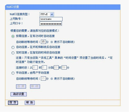 WAN口連接類型是指本路由器支持三種常用的上網(wǎng)方式,請您根據(jù)自身情況進行選擇。如果您的上網(wǎng)方式為動態(tài)IP,即您可以自動從網(wǎng)絡(luò)服務(wù)商(例如:中國電信)獲取IP地址,請選擇“動態(tài)IP”;如果您的上網(wǎng)方式為靜態(tài)IP,即您擁有網(wǎng)絡(luò)服務(wù)商(例如:中國電信)提供的固定IP地址,請選擇“靜態(tài)IP”;如果您上網(wǎng)的方式為ADSL虛擬撥號方式,請選擇“PPPoE”。????上網(wǎng)賬號和上網(wǎng)口令中填入ISP為您指定的ADSL上網(wǎng)帳號和ISP指定的 ADSL上網(wǎng)口令。如果選擇了按需連接,則在有來自局域網(wǎng)的網(wǎng)絡(luò)訪問請求時,自動進行連接操作。如果自動斷線等待時間T不等于0,則在檢測到連續(xù)T分鐘內(nèi)沒有網(wǎng)絡(luò)訪問流量時自動斷開網(wǎng)絡(luò)連接,保護您的上網(wǎng)資源。此項設(shè)置僅對“按需連接”和“手動連接”生效。手動連接是指開機后由用戶手動進行ADSL撥號連接。一般建議選擇按需連接,因為誰不想開機后然后再進行麻煩的撥號了。????此路由器還有MAC地址克隆的功能,MAC地址一般不用更改。但某些ISP 可能會要求對MAC地址進行綁定,此時ISP會提供一個有效的MAC地址給用戶,您只要根據(jù)它所提供的值進行綁定,不過大部分的ADSL都不用此功能所以在此就不詳細介紹了。