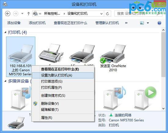 在需要設(shè)置成為默認(rèn)的打印機(jī)上面點(diǎn)擊鼠標(biāo)右鍵,在彈出菜單中選擇“設(shè)為默認(rèn)打印機(jī)”,只有這個(gè)打印機(jī)的左下角就會(huì)多出一個(gè)綠色的對(duì)勾圖標(biāo),這樣就成功了!