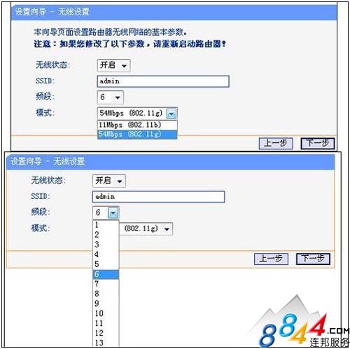 接著模式這一選項拉下來我們可以看到TP-LINK無線路由的幾個基本無線連接工作模式,11Mbps(802.11b)最大工作速率為11Mbps;54Mbps(802.11g)最大工作速率為54Mbps,也向下兼容11Mbps。(在TP-LINK無線路由產(chǎn)品里還有一些速展系列獨有的108Mbps工作模式)。