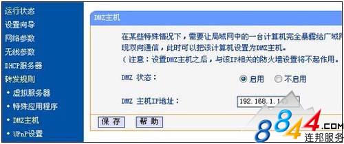 DMZ主機(jī)設(shè)置:首先在DMZ主機(jī)IP地址欄內(nèi)輸入欲設(shè)為DMZ主機(jī)的局域網(wǎng)計算機(jī)的IP地址,然后選中“啟用”,最后單擊“保存”完成DMZ主機(jī)的設(shè)置。
