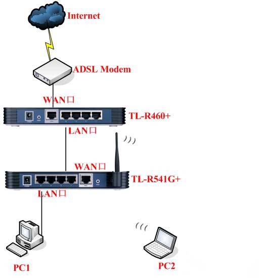 本文主要以有線路由器TL-R460+和無線路由器TL-WR541G+為例為詳細(xì)教大家多臺路由器組網(wǎng)設(shè)置教程。