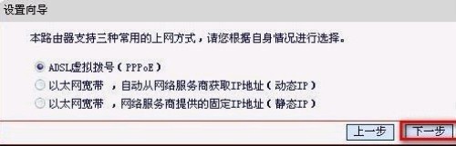 點下一步后:不要發(fā)問為什么選 “ADSL虛擬撥號(PPPoE)”這里對專業(yè)的東西不做多解釋,只要明白一般由電信,網(wǎng)通,鐵通等提供的個人ADSL寬帶接入就這樣選