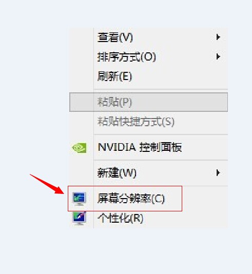 2. 在桌面空白處,按鼠標右鍵看到“屏幕分辨率”,選擇;