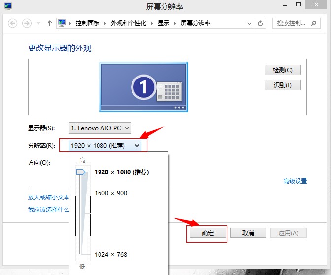 3. 如圖操作,選擇適合你的屏幕分辨率;