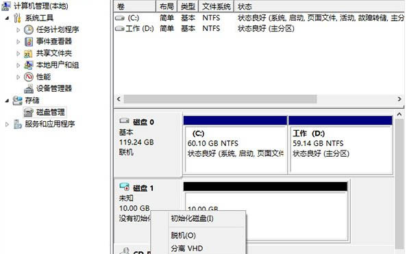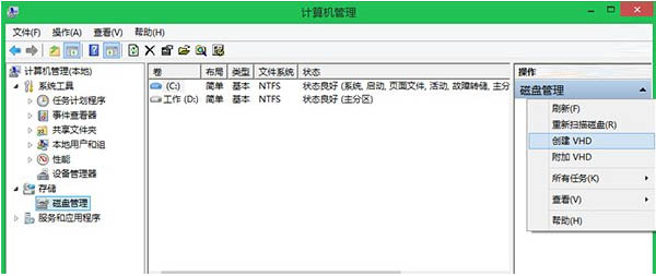 1、以Win8.1工作環(huán)境為例。打開計算機右鍵,選擇磁盤管理操作,創(chuàng)建VHD;