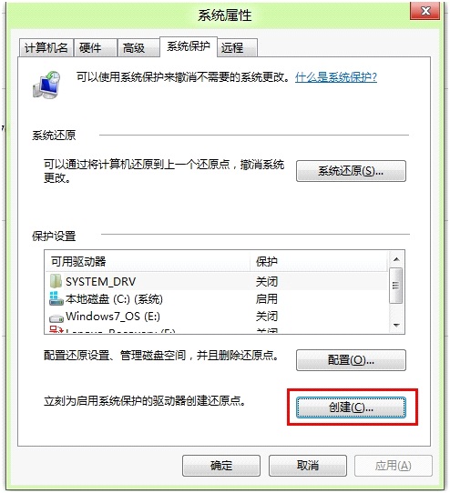 操作步驟: 一、還原點(diǎn)創(chuàng)建 1.桌面計(jì)算機(jī)點(diǎn)擊右鍵---屬性; 2.點(diǎn)擊“系統(tǒng)保護(hù)”; 3.點(diǎn)擊“創(chuàng)建”; 4.命名后點(diǎn)擊“確定”; 5.等待完成即可。 二、還原點(diǎn)...