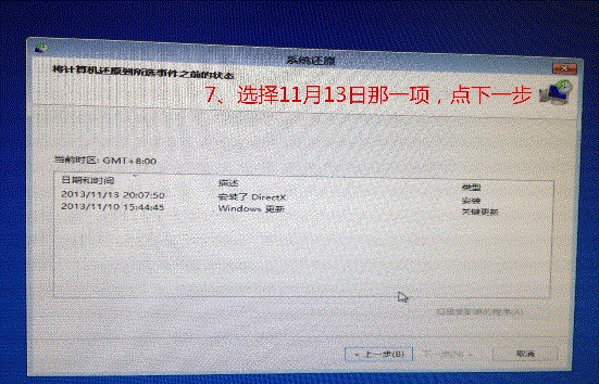 8. 選擇某個還原點(diǎn);