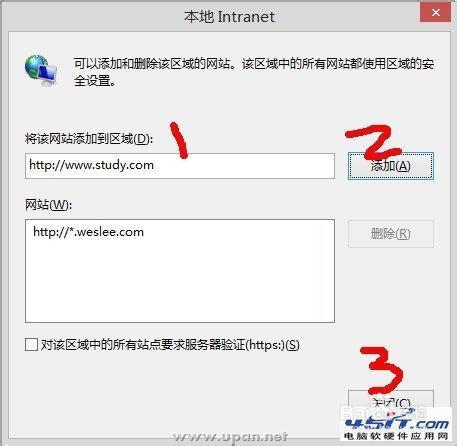 后來嘗試將網(wǎng)址添加到受信任的網(wǎng)址列表中,但是IE仍然無法正常打開此網(wǎng)址。原來在【Internet選項】的【安全】選項卡下,站點那里默認(rèn)是Internet,而不是本地Internet,所以我們只需要將網(wǎng)址添加到本地Internet網(wǎng)址列表中即可。