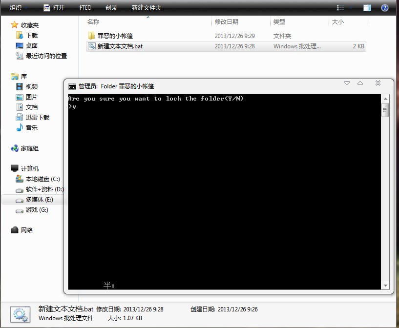 第三步,把TXT文本格式改成bat格式,運(yùn)行,就會(huì)出現(xiàn)一個(gè)叫“罪惡的小帳篷”的文件夾。