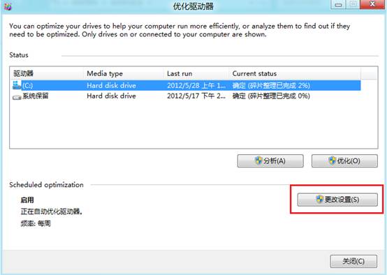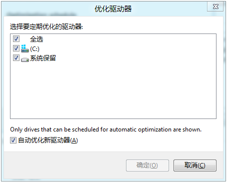 4、點擊“設置”按鈕,可以進入自動優化驅動器界面。如下圖所示: