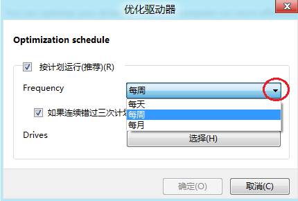 6、點擊選擇可以選擇要定期優化的驅動器。