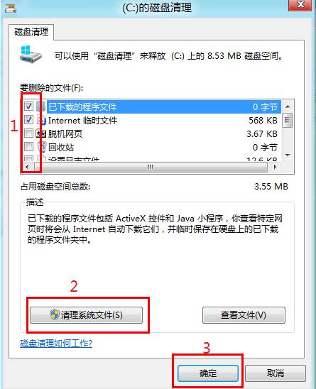 8、首先選擇要刪除的文件,然后點擊“清理系統文件”,然后點擊“確定”完成操作。