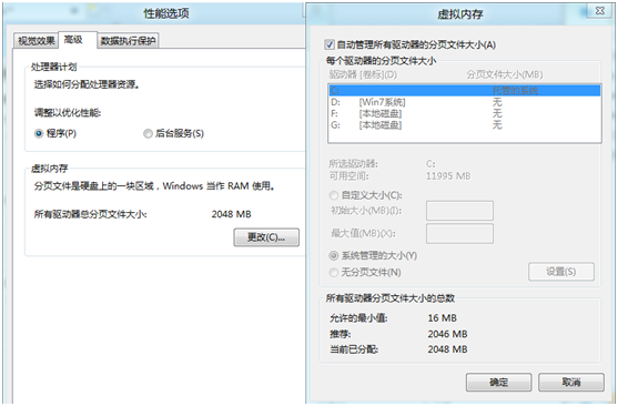 1、右鍵計算機“屬性”,點擊“高級系統設置”;  2、點擊“高級”,打開性能“設置”;  3、在“性能選項”窗口,打開“高級”選項卡,點擊“更...