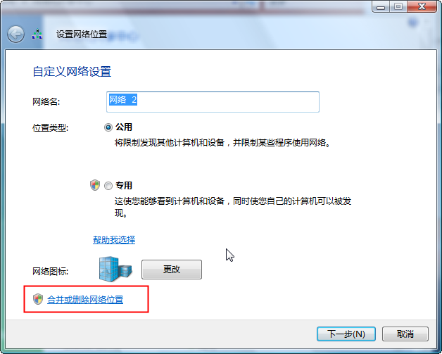 修改網(wǎng)絡連接的名稱,或者進入 合并或刪除網(wǎng)絡位置 刪除多余的網(wǎng)絡連接名稱。
