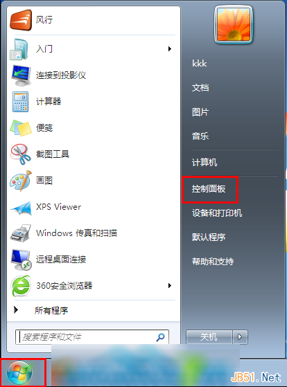 1.點擊左下角的開始菜單,選擇“控制面板”