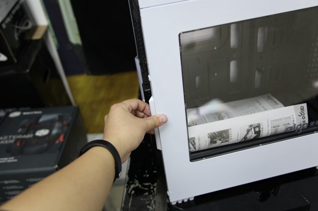 完成了主板上主要部件的安裝,下面就要開始準備機箱了,總不能讓主板在外面承受風吹日曬吧。讓我們先來拆解一下愛國者這款機箱。想要打開側板首先要把背部的手擰螺絲擰下。