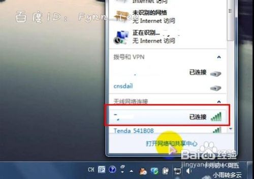 打開路由器,然后在電腦操作。點擊桌面右下角“網絡”圖標,找到無線網sid,點擊“連接”按鈕連接自己的路由器分享的無線網絡。如圖,顯示已連接。