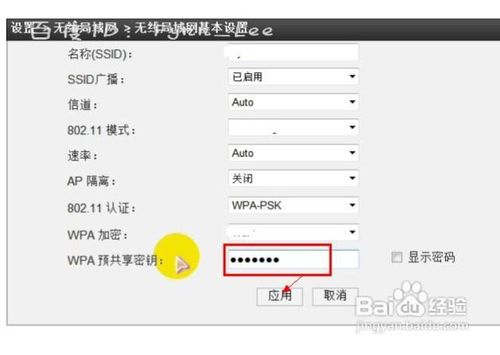 如圖,在界面文本框中輸入無線網共享密碼,點擊“應用”按鈕即可修改密碼。在彈出的對話框中點擊“確定”按鈕即可成功設置無線網密碼。