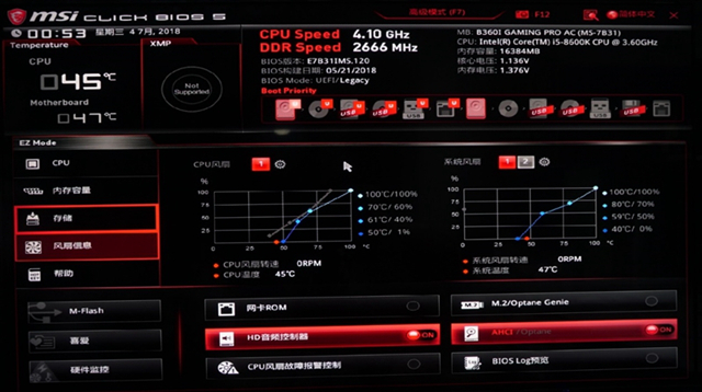 B360I GAMING PRO AC的BIOS依然采用了Click BIOS 5圖形化UEFI 。BIOS界面包含CPU、內存的頻率和電壓, CPU以及主板溫度等信息。